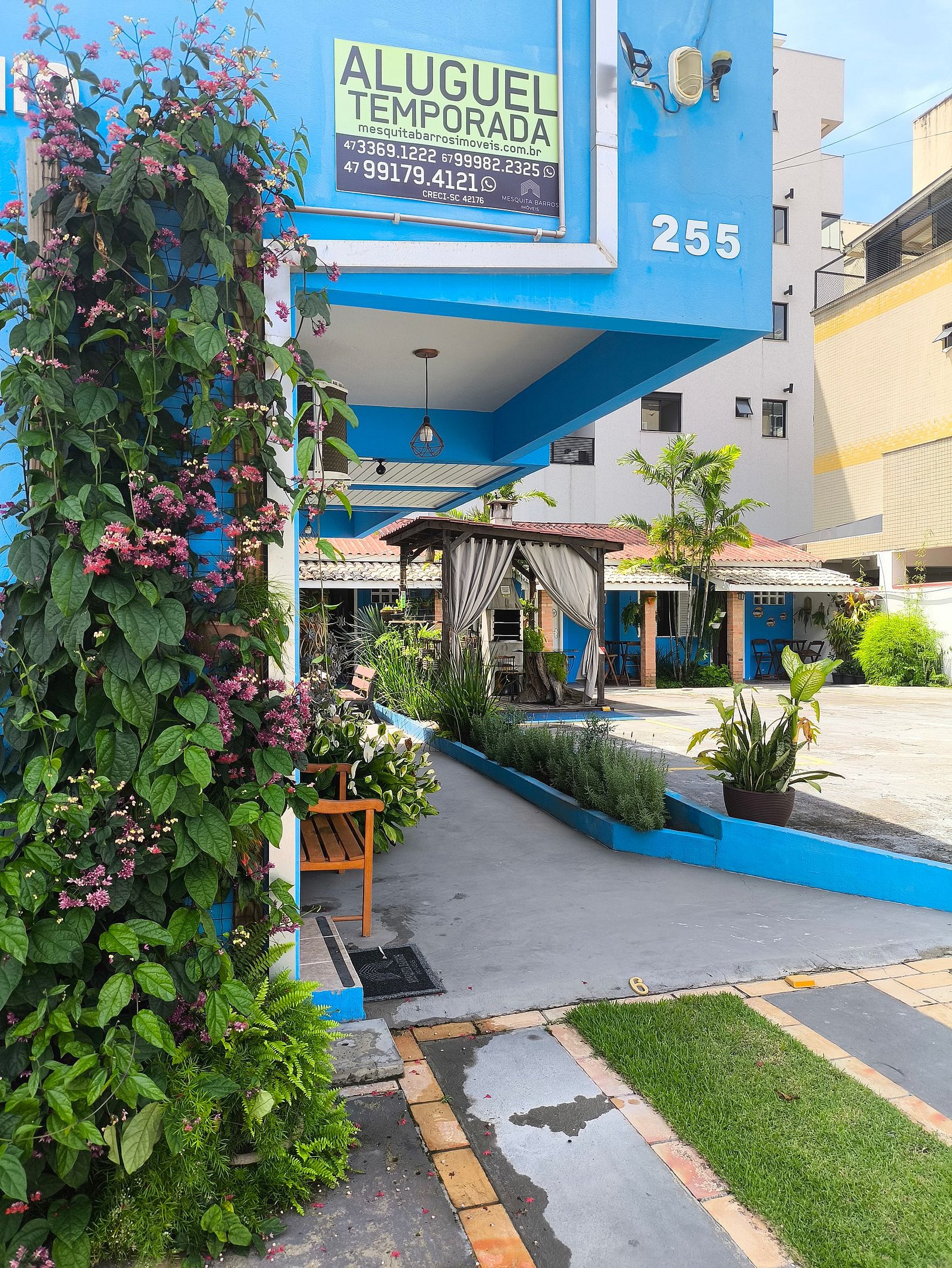 Ficamos a 150 metros da Praia de Bombas, meia quadra da Avenida pricipal, Farmácia, Padaria, Mercados e restaurantes a um pulinho de distância.
